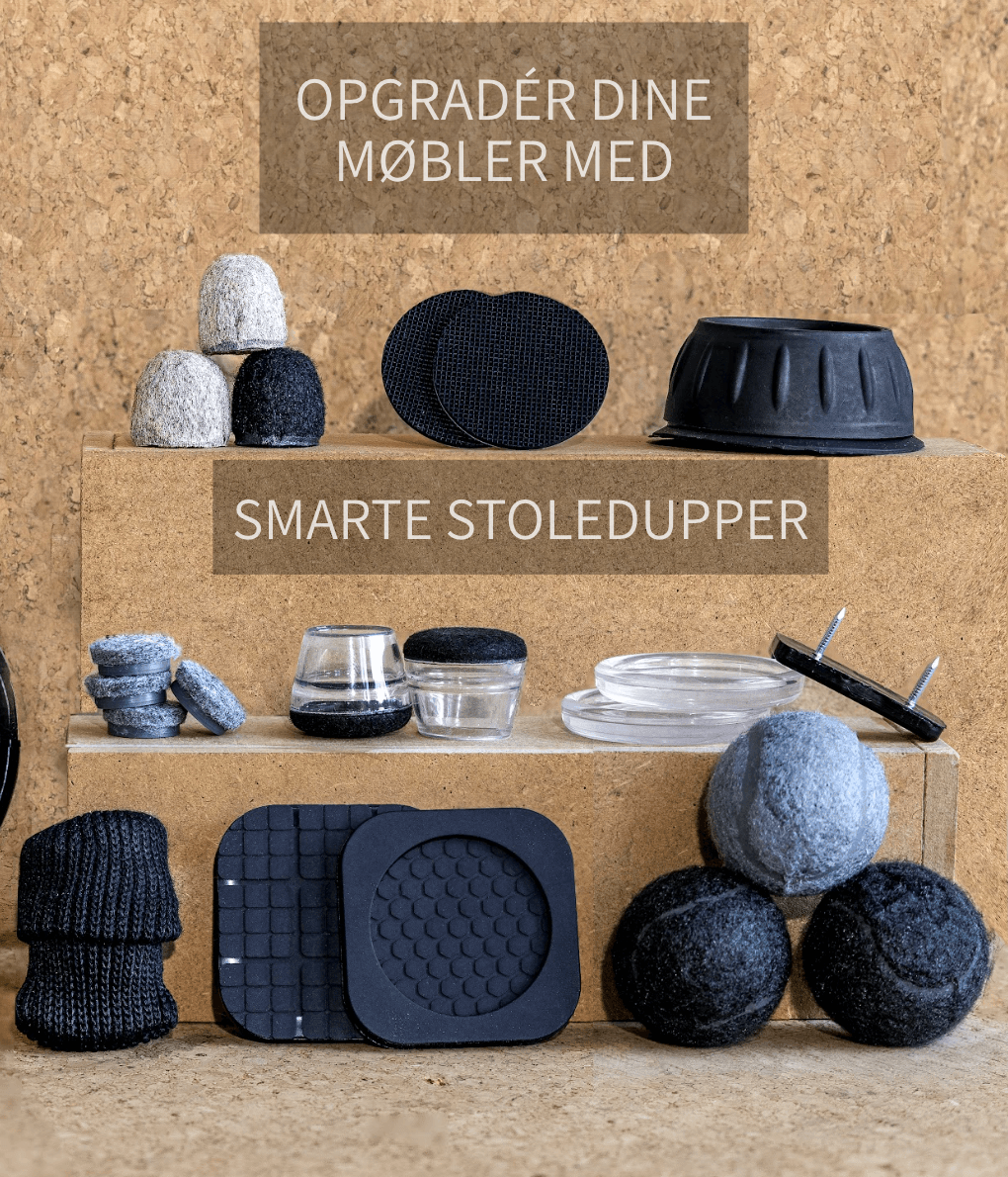Gummi møbeldupper bruges, når møbler skal stå stabilt uden at glide. De giver et stærkt greb og er velegnede til glatte overflader som fliser, laminat og trægulve. I modsætning til selvklæbende dupper til stole i filt fokuserer de mere på stabilitet end på glideevne.